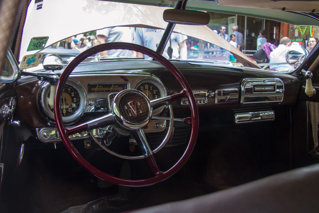 The thing about old cars is that they don’t just look different, they also differ in ways that speak to changes in times and technology. Some of those old models, like the Hudson Hornet shown above, are enormous. Leg room was never a problem. Nor was the price of gasoline. The turning radius, on the other hand, might have presented a challenge. The size of the old steering wheels is another eye opener. In the days before power steering you needed strong biceps and a lot of torque to safely steer one of those metal giants through traffic.