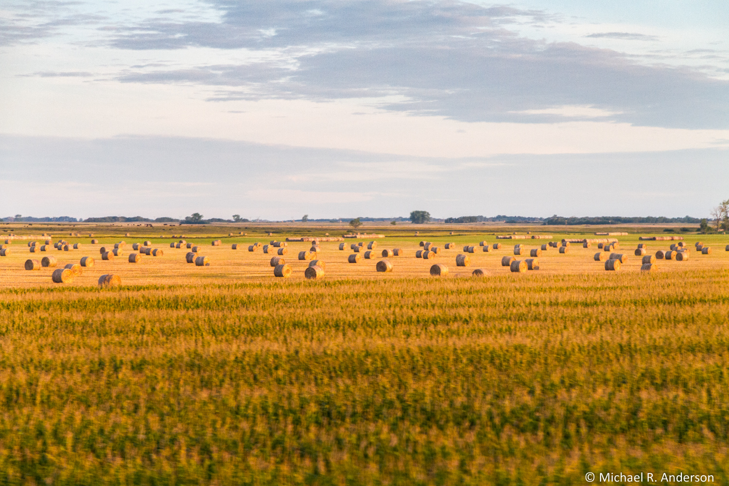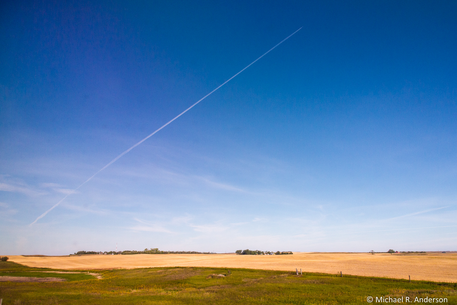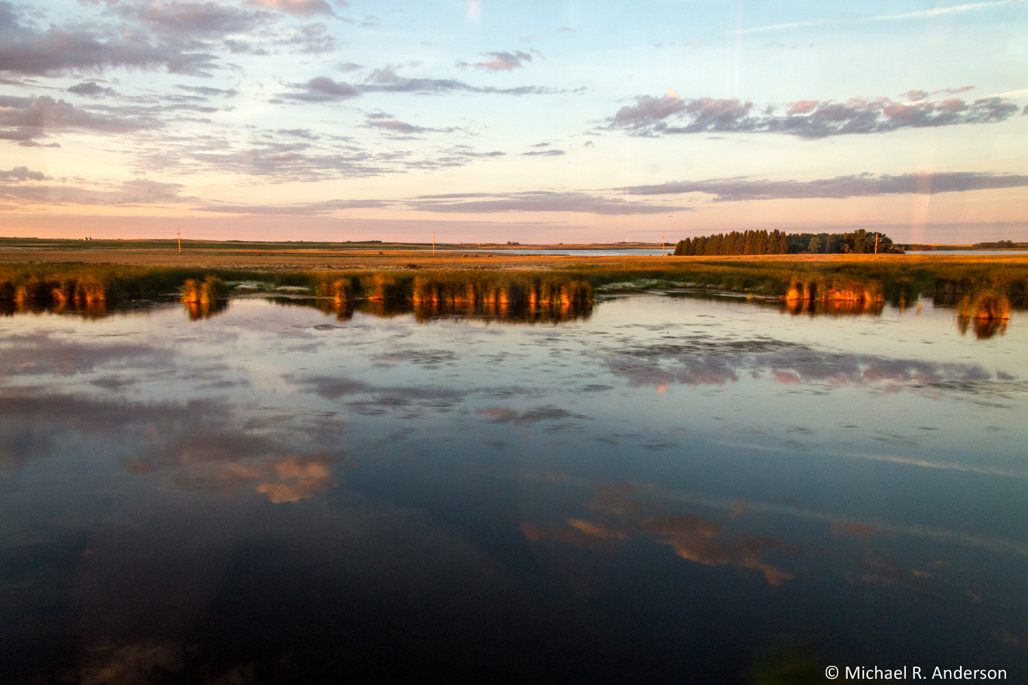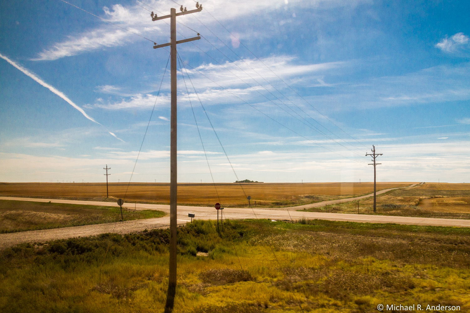 At the end of Part 1, Riding the rails, I included a picture my wife took of me staring out the window of the Empire Builder, camera in hand, watching the countryside pass by. This time I thought it would be nice to show some of the things we observed while traveling across the Northern Great Plains. All of these photos were taken through the thick, tinted, and rather dirty glass of a moving train car, so you might see some reflections, blurring, discoloration, etc. Since I was unable to attack the outside of my window with Windex, I attacked some distracting spots later with Photoshop.