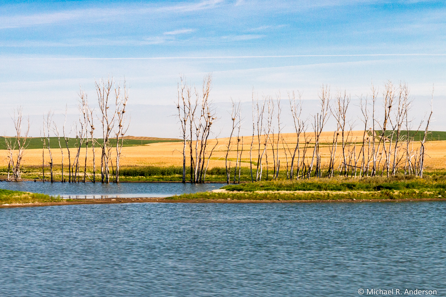 You expect to see lakes in Minnesota. They’ve got to put those 10,000 bodies of water somewhere. But, the lakes don’t stop at the state line; North Dakota was also once under the glaciers. The area around Devils Lake, North Dakota, has quite a few lakes. In fact, that part of the state has been faced with rising lake levels and flooding for quite a few years (see Where the Roads End in Water: The Lake That Won’t Stop Rising). The photo at the very top of this page was taken in that part of North Dakota.