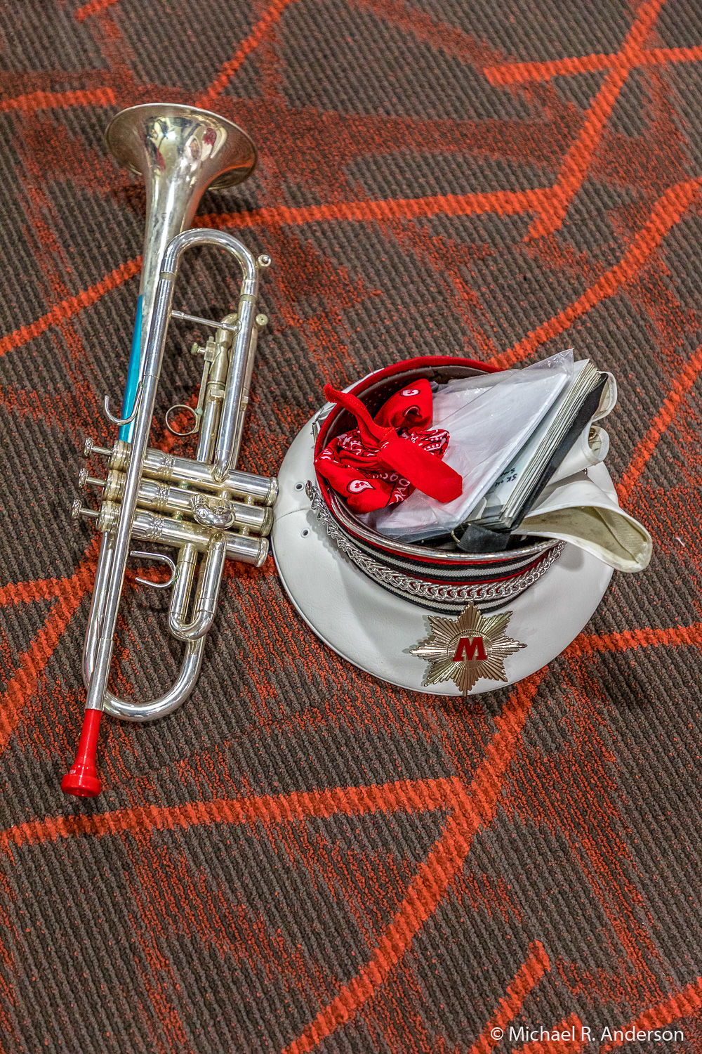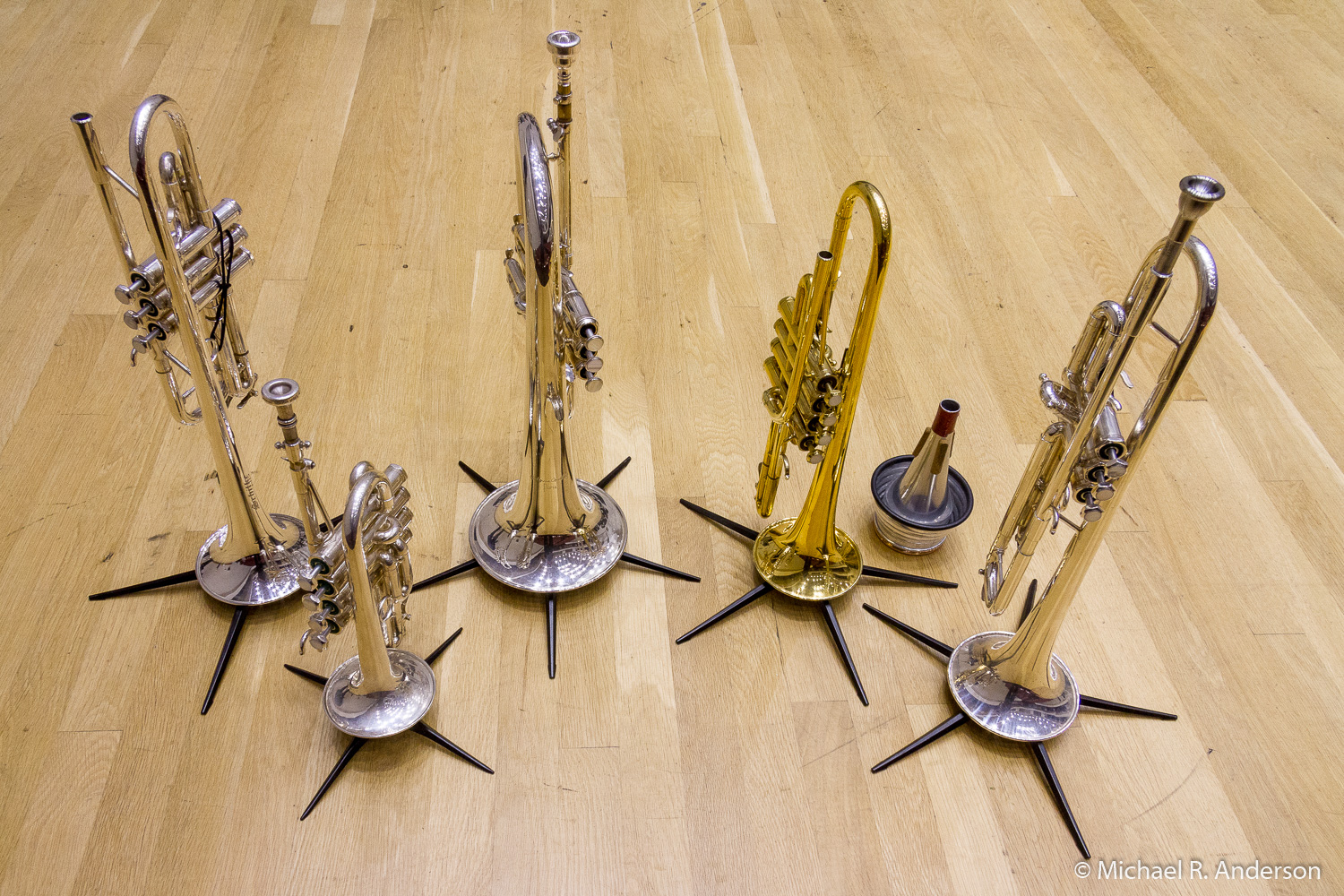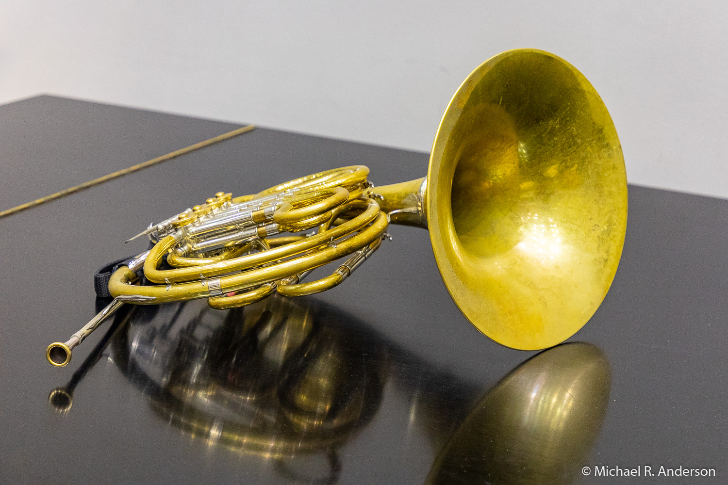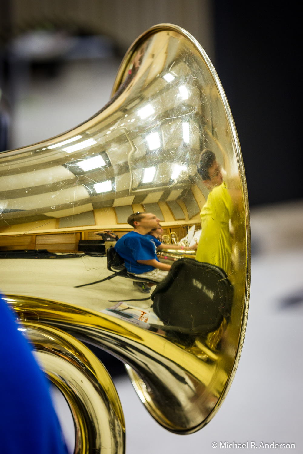 I know. I know. I just can’t seem to resist those shiny brass instruments! My apologies to players of strings, woodwinds, and percussion. I’ll try to do better this year. In my defense, however, I rarely photograph the symphony and those students seem reluctant to leave their instruments lying around. I often photograph the wind ensemble or jazz groups where the shinier instruments reside. To compensate, here’s a photo of me with my string instrument.