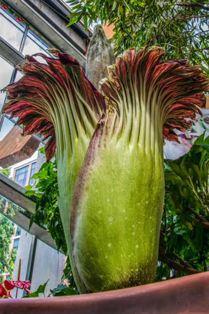 I often photograph flowers. They’re pretty, they’re colorful, and they usually smell nice. But, every once in a while you run into one that refuses to conform. So, when I heard on the news last week about a big old plant that smells like, well, it’s often called the “corpse flower” so you can probably guess what it smells like, I just had to see it.