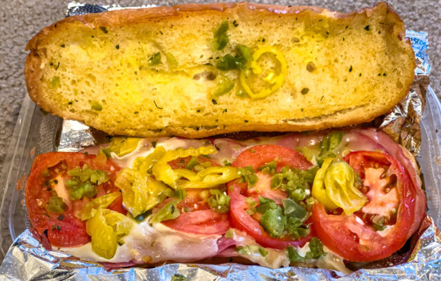 Kathy and I went to Porta Bella on February 23 hoping to get one more meal before they closed. I was looking forward to enjoying a Garibaldi Sandwich, my favorite, with banana peppers, of course. Unfortunately, much to my dismay, they were completely booked up through their final day. However, much to my joy, on February 26 a very good friend, Marsha Van Domelen, stopped over and gave me a Garibaldi Sandwich that she had just purchased for me! She had been smart enough to make a reservation when she heard the restaurant was closing! Having seen my sorrowful post on Facebook, she knew of my quandary and, bless her heart, was kind enough buy one for me and deliver it!